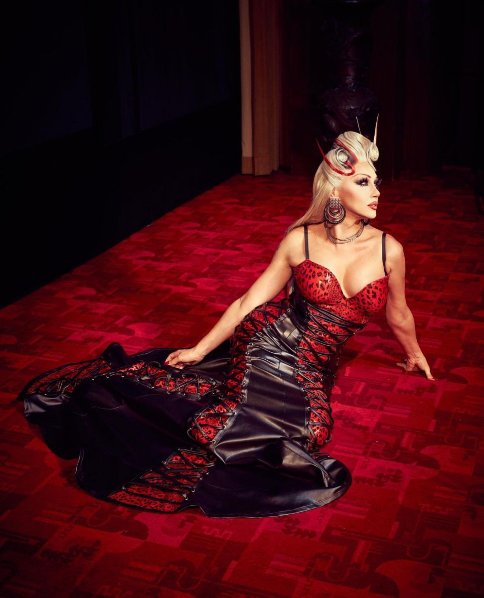 Super short leather jacket on top of the sexiest touch of leopard print & leather long dress .